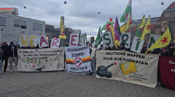 چنی بەردەوامی ڕاپیماکەی بە سەرمەشقایەتی کۆمیتەو پەشتیوانی جە وەرنیشتی کارەوانێوە جە کوردا بەشداری ڕاپیماکەی بیێ. جوانا کوردی بە بەرزکەردەیۆ ئاڵاکا یەپەگەی و ڕابەر ئاپۆی پەیامو ئەوەکۆشای هامبەششا پەی فەلسەتینییەکا بەربڕی.