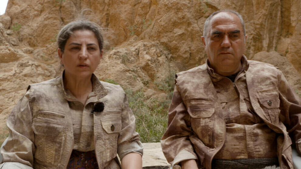 بەهزاد چارچەل (نەدیم سەڤەن) و تێکۆشین ئۆزانە (ئەسمەن ئەیاز)ە کە دلې گرووپو ئاشتی و گلېرگەی دیموکراتیکینە بێنې، پېوەس بە مەراسیمەکەی پەی ئاژانسوو هەواڵو فوراتی (ANF)ی قسێشا کەرڎۍ.