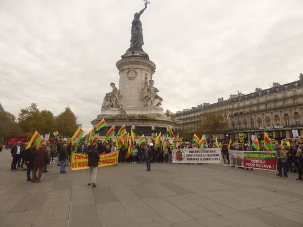لە پاریسی پایتەختی فەرەنسا دژی هێرشە داگیرکارییەکان لەسەر بانگەوازی جەدەکە_فە سەدان کوردستانی ڕێپێوانیان کرد و درووشمیان دژی هێرشی داگیرکاری بەرزکردەوە.