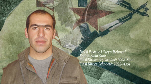"وەک دەزانرێت ٢٦.٩.٢٠٢٢ لە هەرێمی ئاسۆس سەر بە شارباژێڕ دەوڵەتی تورکی داگیرکەر هێرشێکی ئاسمانی ئەنجامدابوو. لەو هێرشەدا هەڤاڵێکمان بریندار ببوو. وەک دەزانرێت ئەو هەڤاڵەمان کاتێک لەسەر ئەرکەکەی بوو رووبەڕووی هێرشی ئاسمانی دەڵەتی تورکی داگیرکەر بوو و برینداربوو. لە رێکەوتی ٥.١٠.٢٠٢٢ هەڤاڵەکەمان کە بریندار ببوو گەیشتە کاروانی شەهیدان. زانیارییەکان لە بارەی ئەو شەهیدەوە بەم جۆرەن: