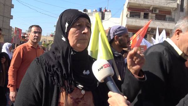 دایە حەنیفە، دایکی شەهید: "هاتووم بۆ ئیدانەکردنی ئەو هێرشانەی کە دەوڵەتی تورک دژی گەریلا ئەنجامی دەدات. ئەردۆغان چی لەو کەسانە دەوێت کە بە چەکی کیمیاوی هێرش دەکاتە سەریان؟ گەریلا کێیە؟ ئەوان منداڵ و خوشک و برا و ئەندامانی خێزانی ئێمەن. ئەردۆغان هەرچییەک بکات ئێمە لەگەڵ منداڵەکانماندا دەبین”.