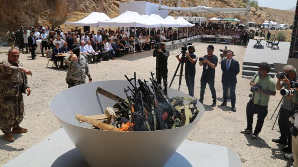 دیمەنی مەراسیمی سوتاندنی چەکەکانی گرووپی 'ئاشتی و کۆمەڵگەی دیموکراتیک'ـی گەریلا...