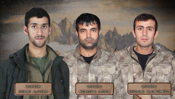 "هەڤاڵانمان حەقی، زنار و ڕێبەر لە ١٨ی کانوونی دوومەمی ٢٠٢٥ لە ئەنجامی هێرشی دەوڵەتی داگیرکەری تورکدا شەهید بوون.