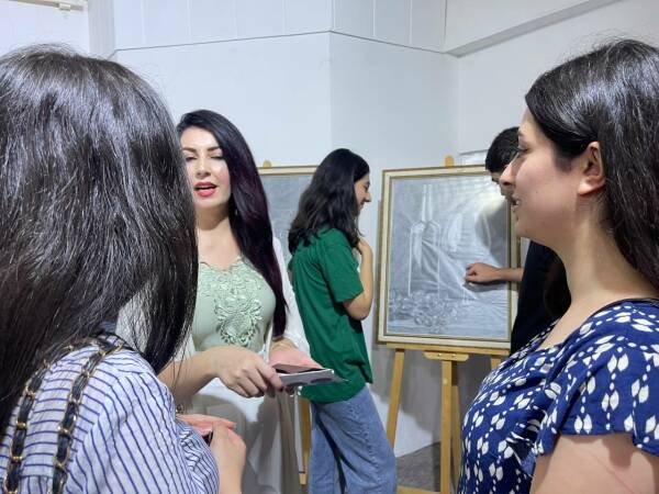 پاشان سارا قاسم دەرباری فێربوون و تابلۆکەی وتی: "ماوەی شەش ساڵە لێرەم بە دوو تابلۆ بەشداری پێشانگەکە بووم. تابلۆکەم باس لە شاژنێکی بابلی دەکات، حەزمکرد بە شێوەیەکی تایبەت بۆ خۆم کار بکەم.