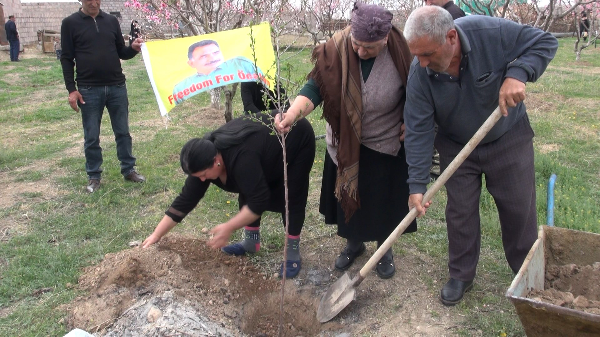 لە میانی پیرۆزباییەکەدا دروشمی "بژی سەرۆک ئاپۆ"، "ژن ژیان ئازادی" و "بەبێ سەرۆک ژیان نابێ" دەوترانەوە.